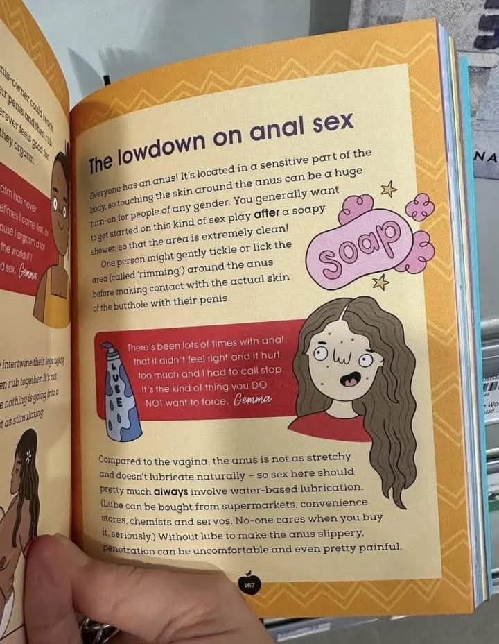 Okay, kids are not blank slates, even five year olds know something about sex and have for generations. Those who grow up on farms have always been aware of the basics, and in this day and age when sexual swear words are used far more freely than they were even a decade ago, we needn’t be too coy about the subject. All the same, it is difficult to understand the mentality of women who describe in detail the intricacies of anal sex to prepubescents. Note the reference to “people of any gender”, which is properly rendered as “people of either sex”. Clearly these two are pushing gender ideology. Nor is this the first book on which they have collaborated. In 2021, they published Welcome To Your Period! which is presumably aimed at girls, ie real girls.