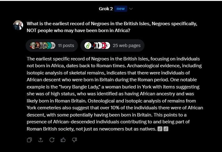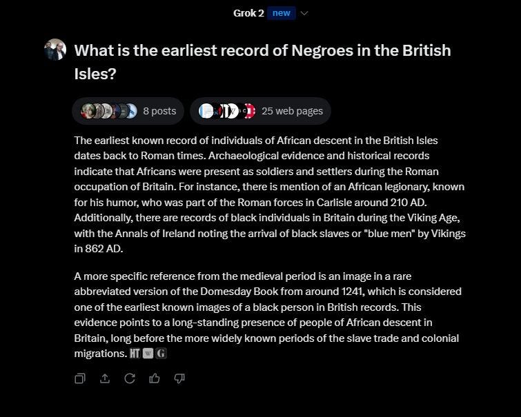 Next, I asked GROK an entirely new question: what is the earliest record of Negroes in the British lsles?